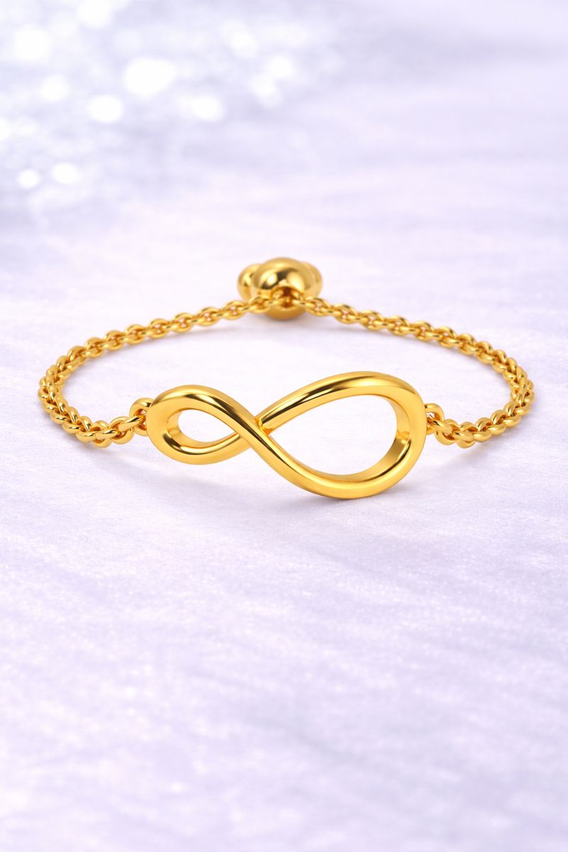 Add a meaningful touch to your everyday style with this elegant infinity symbol chain ring for women. Designed with a sleek gold-tone finish, the ring features a smooth infinity motif at the center, representing endless love, balance, and timeless connection.