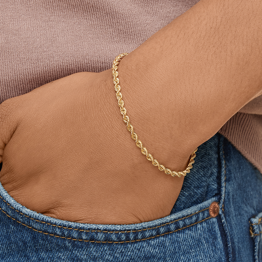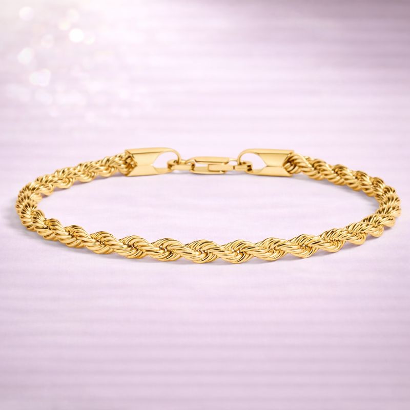 This bracelet features a beautifully twisted rope-style chain that reflects light from every angle, giving it a rich and luxurious shine. The intricate weaving of the links adds depth and texture, creating a bold yet elegant look on the wrist.