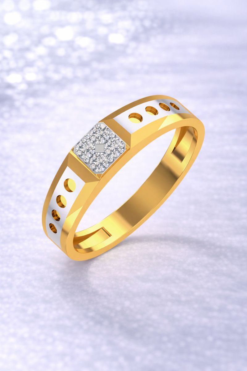 Make a bold yet refined statement with this contemporary geometric accent band ring for men. Crafted in a polished gold-tone finish, the ring features a square-shaped center panel highlighted with a cluster of sparkling white stones, creating a striking focal point.